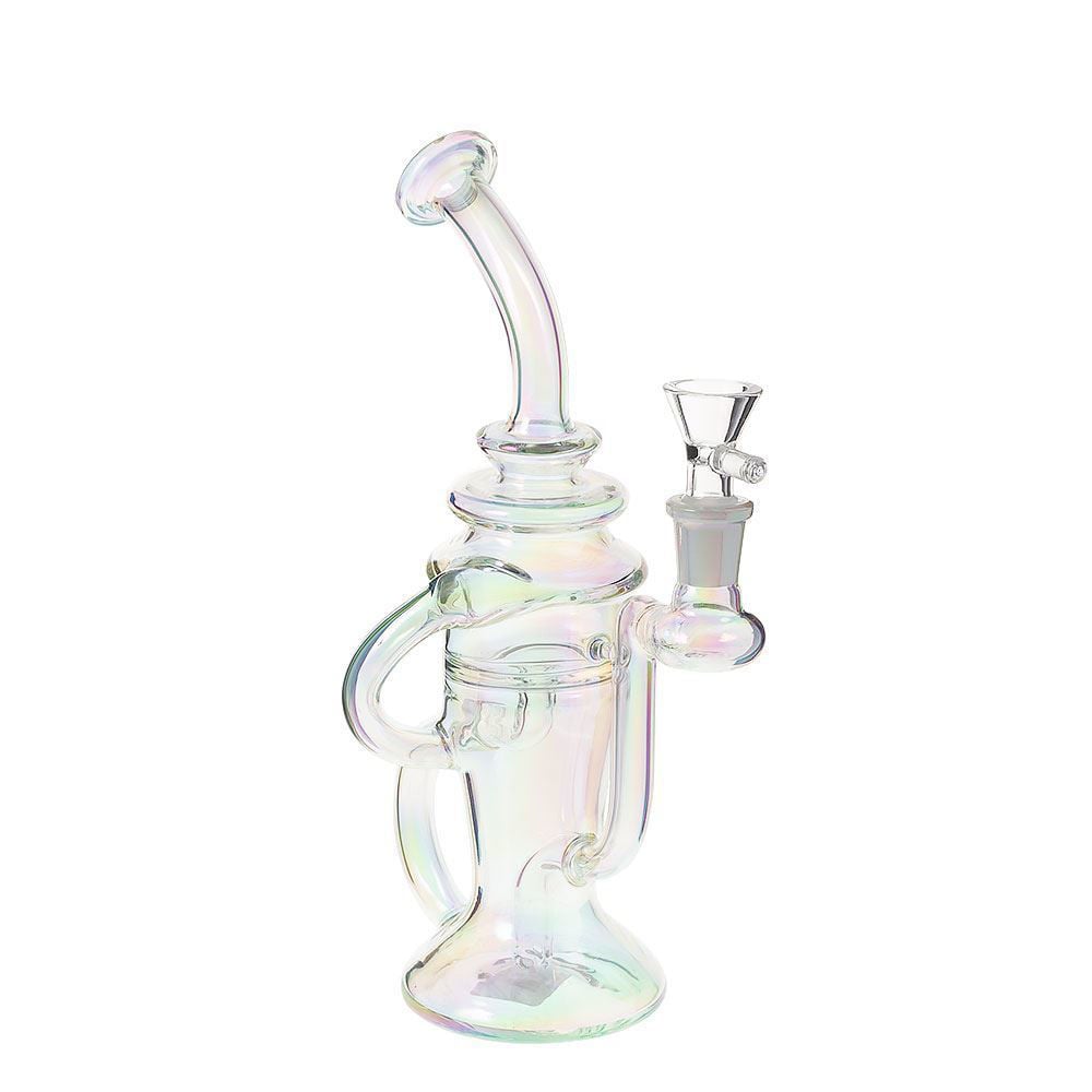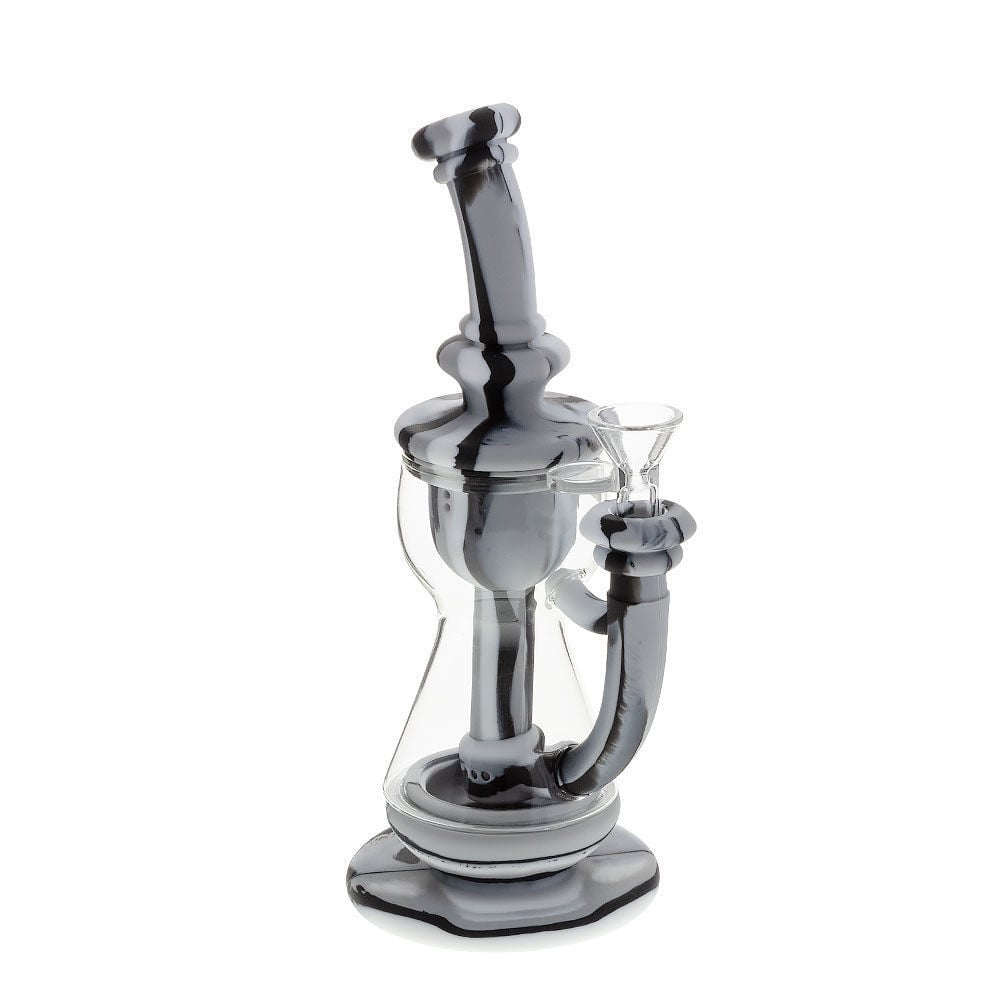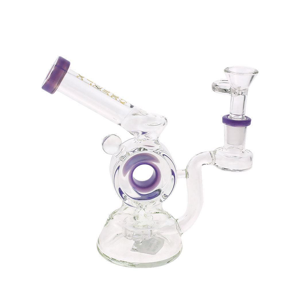 Recyclers are named after the process of which water is recycled through the main and secondary chamber as the bong or dab rig is smoked. While you inhale, an infinite water-smoke loop is created as the smoke feeds into the seconardy chamber, while water cycles and drains and back down into the main chamber through the intake tube.